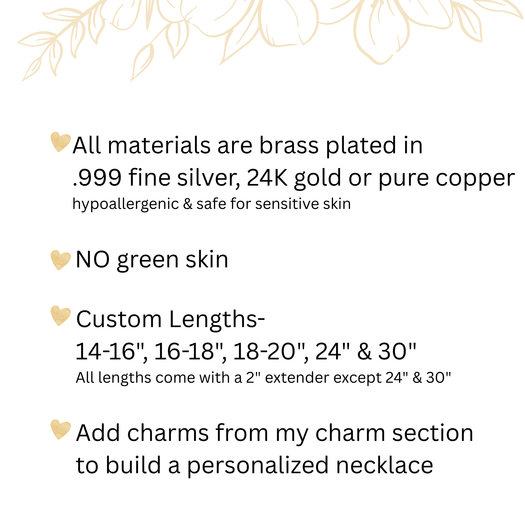 *Chains are Brass - Plated in .999 Fine Silver, 24K Gold or Pure Copper