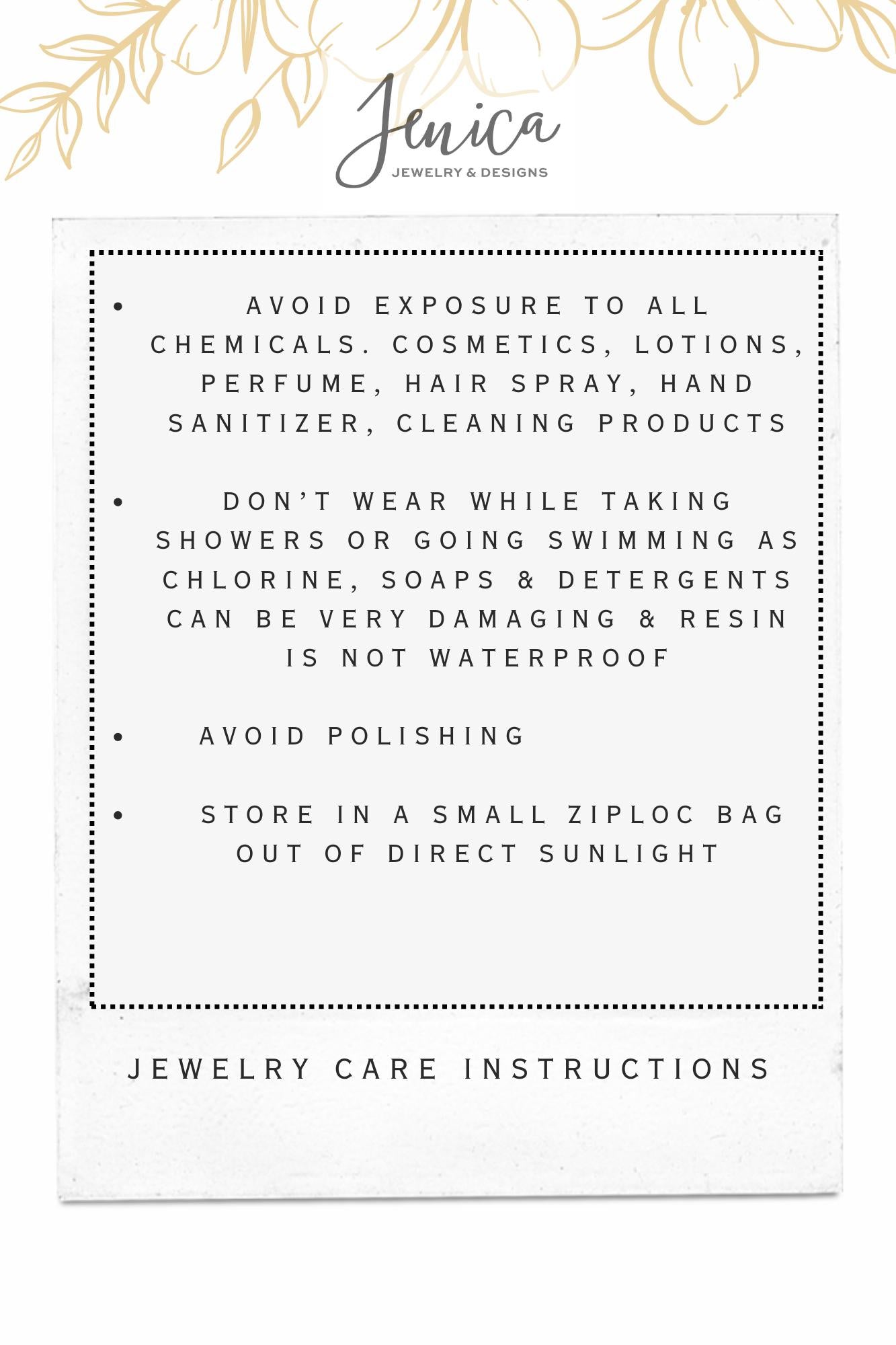 **Store in a small ziplock bag, away from direct sunlight, to keep your jewelry looking its best.